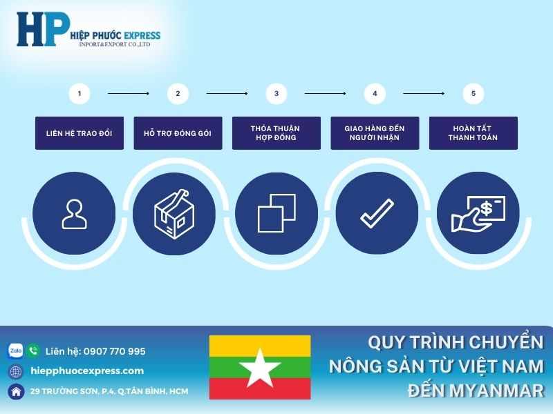 Tất cả các quy trình, lưu ý và mức giá khi vận chuyển nông sản đi Myanmar đều được Công ty TNHH Thương Mại Dịch Vụ Xuất Nhập Khẩu HIỆP PHƯỚC chia sẻ chi tiết trong bài viết trên. Với kinh nghiệm dày dặn và hệ thống dịch vụ hoàn chỉnh, HIỆP PHƯỚC EXPRESS cam kết mang đến cho khách hàng những giải pháp vận chuyển tối ưu nhất. Hãy liên hệ ngay với HIỆP PHƯỚC EXPRESS để nhận được tư vấn chuyên sâu và báo giá ưu đãi nhất thị trường !